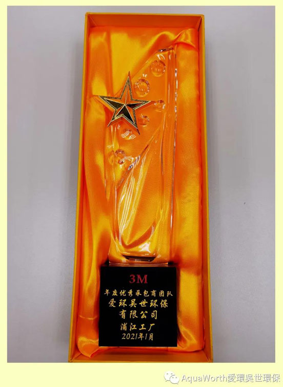 2021年3月19日,在3M公司舉行的優(yōu)秀承包商表彰會(huì)上,3M公司有關(guān)領(lǐng)導(dǎo)親自授予了愛環(huán)吳世(蘇州)環(huán)保股份有限公司“年度優(yōu)秀承包商團(tuán)隊(duì)”獎(jiǎng)牌和獎(jiǎng)杯。